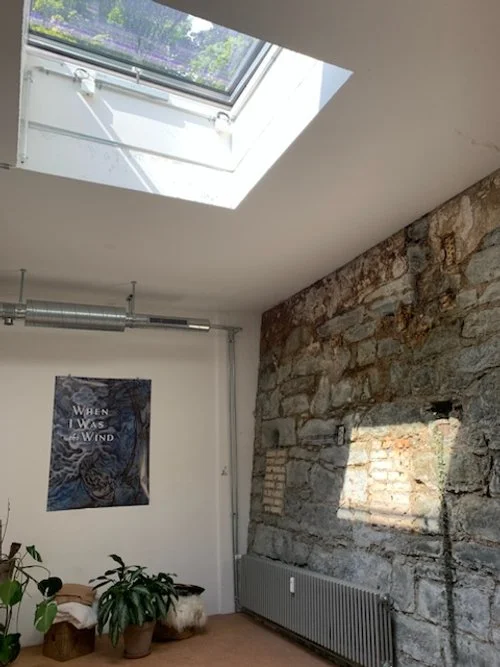 Ein Raum zum Atmen, mit Licht von oben. Die alten Steinmauern tragen die Ruhe vergangener Zeit, während das Dachfenster den Himmel hereinlässt. Hier findest du Raum für Stille, Bewegung und innere Arbeit — ein Ort, der sich nach deinem Bedürfnis gestalten lässt.